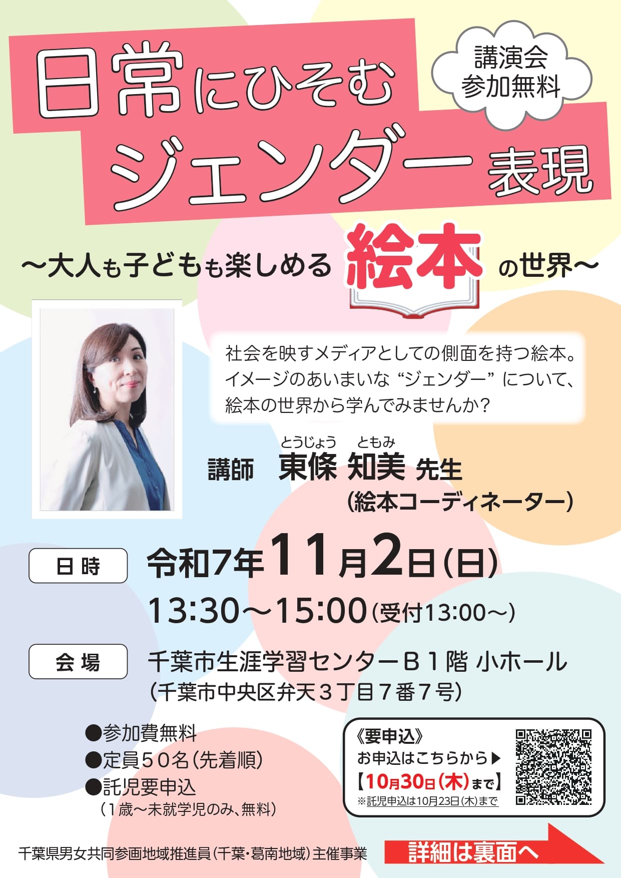 千葉県では、令和7年11月2日(日)に、(講演会)「日常にひそむジェンダー表現~大人も子どもも楽しめる絵本の世界~」を開催します。