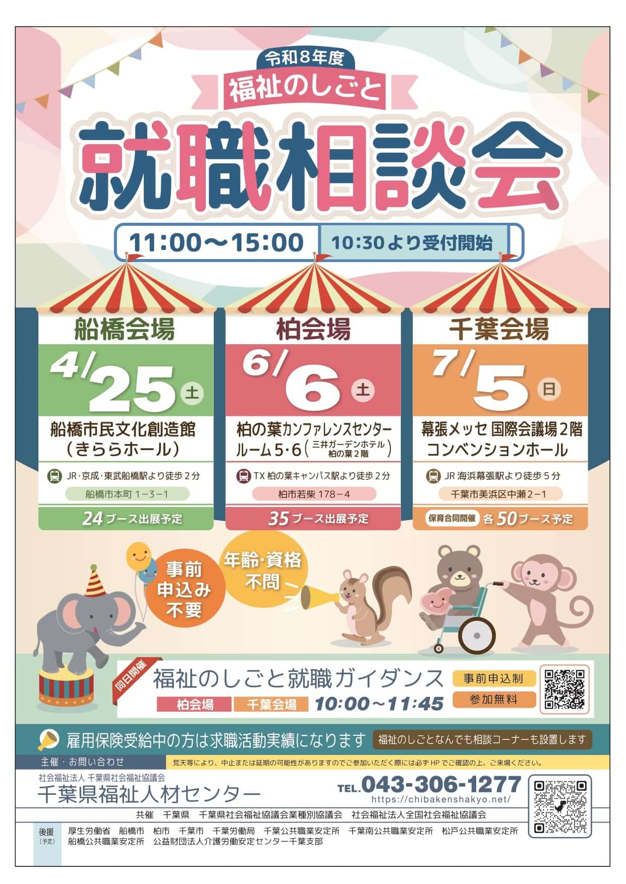 千葉県福祉人材センターでは、令和8年4月25日(土)、「福祉のしごと 就職相談会」(11:00~15:00)を開催します。