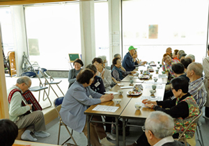 お茶・お菓子を頂きながらの歓談や、懐かしい歌・ゲーム等を楽しむ癒しの場となっています。また、市の指導員によるフレイル予防への 取り組み等心身の健康に配慮しながら、気軽に参加できる環境を大切にしています。
