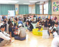ボランティア登録52名(民生委員児童委員、健康づくり推進員)で、遊びや仲間づくりの場を提供しています。年3~4回、保健師を交え、健康相談を実施しています。