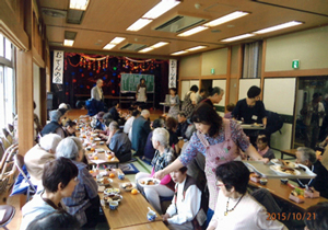 民生委員児童委員や給食ボランティア、地区ボランティアで作ったおでんを食べて頂いた後に、お楽しみ会(演芸、福引等)を開催しています。